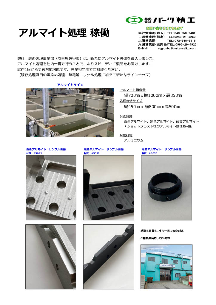 弊社 表面処理事業部 (埼玉県越谷市) は、新たにアルマイト設備を導入しました。